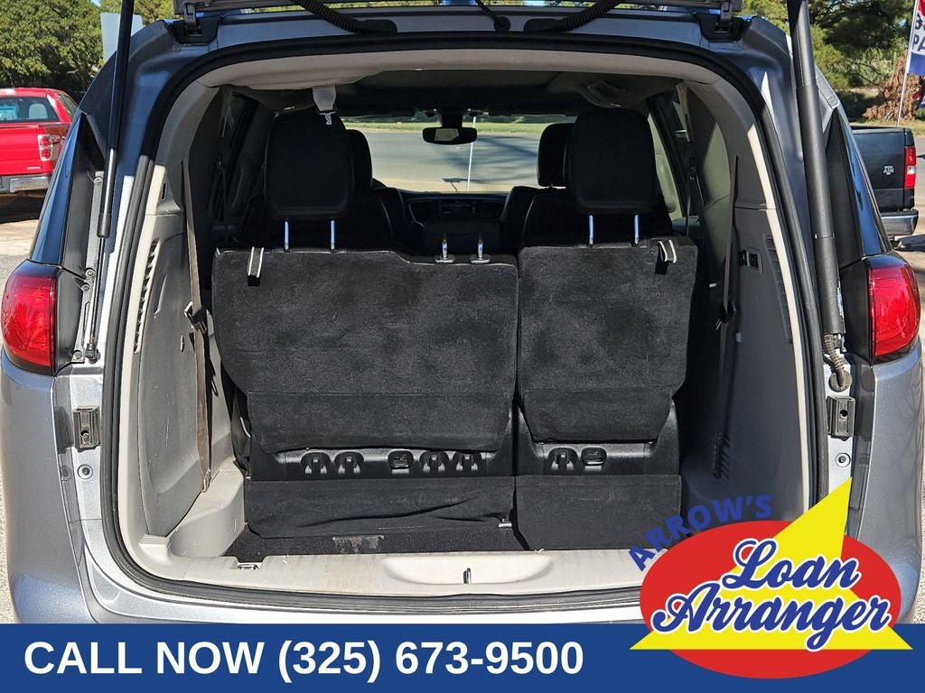 This vehicle comes with the following features and options : Inflatable Spare Tire Kit w/Sealant (Vacuum Delete), Quick Order Package 27P, 13 Speakers, 18 x 7.5 Painted Aluminum Wheels, 220 Amp Alternator, 3.25 Axle Ratio, 3rd row seats: split-bench, 4-Wheel Disc Brakes, ABS brakes, Air Conditioning, Alloy wheels, AM/FM radio: SiriusXM, Apple CarPlay/Android Auto, Audio memory, Auto-dimming door mirrors, Auto-dimming Rear-View mirror, Automatic temperature control, Black Seats, Black Spear Rear Fascia Applique, Bodyside moldings, Brake assist, Bumpers: body-color, Compass, Delay-off headlights, Driver door bin, Driver vanity mirror, Driver's Seat Mounted Armrest, Dual front impact airbags, Dual front side impact airbags, Electronic Stability Control, Emergency communication system: SiriusXM Guardian, Four wheel independent suspension, Front anti-roll bar, Front Bucket Seats, Front dual zone A/C, Front Fascia Air Deflectors, Front fog lights, Front reading lights, Fully automatic headlights, Garage door transmitter, Heated door mirrors, Heated front seats, Heated rear seats, Heated steering wheel, High-Intensity Discharge Headlights, Illuminated entry, Knee airbag, Leather steering wheel, Low tire pressure warning, Manufacturer's Statement of Origin, Memory seat, Navigation System, Occupant sensing airbag, Outside temperature display, Overhead airbag, Overhead console, Panic alarm, ParkView Rear Back-Up Camera, Passenger door bin, Passenger seat mounted armrest, Passenger vanity mirror, Power door mirrors, Power driver seat, Power Liftgate, Power moonroof, Power passenger seat, Power steering, Power windows, Premium Leather Trim Bucket Seats, Radio data system, Radio: Uconnect 4C Nav w/8.4 Display, Rear air conditioning, Rear reading lights, Rear window defroster, Rear window wiper, Reclining 3rd row seat, Remote keyless entry, Roof rack, Security system, Speed control, Split folding rear seat, Spoiler, Steering wheel mounted audio controls, Tachometer, Telescoping steering wheel, Tilt steering wheel, Touring Suspension, Traction control, Trip computer, Turn signal indicator mirrors, Variably intermittent wipers, Ventilated front seats, and Voltmeter.