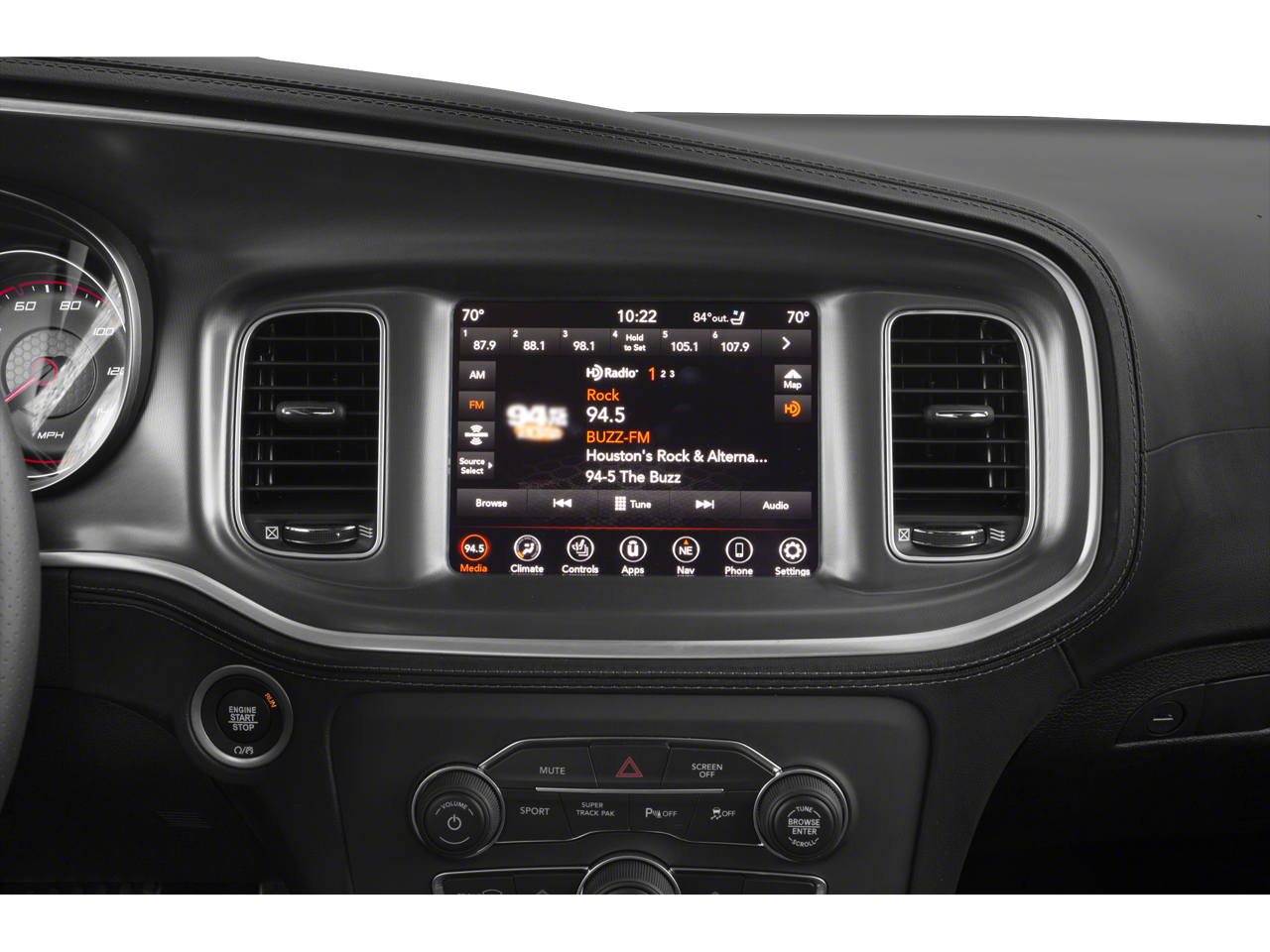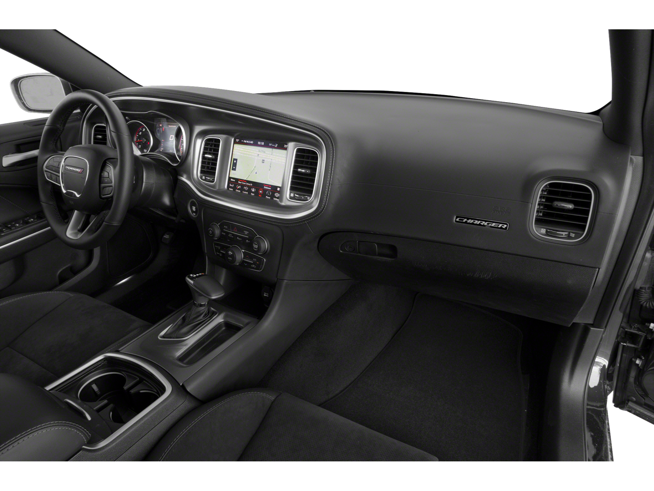 This vehicle comes with the following features and options : Blacktop Package (Black 1-Piece Performance Spoiler, Black Badge, Black Dodge Grille Badge, Gloss Black I/P Cluster Trim Rings, Satin Black Charger Decklid Badge, Satin Black Dodge Tail Lamp Badge, and Wheels: 20 x 8.0 Black Noise Painted), Quick Order Package 2EH, Black Cloth, 4-Wheel Disc Brakes, 6 Speakers, ABS brakes, Air Conditioning, Alloy wheels, AM/FM radio: SiriusXM, Anti-whiplash front head restraints, Apple CarPlay/Android Auto, Auto-dimming Rear-View mirror, Automatic temperature control, Brake assist, Bumpers: body-color, Cloth Performance Seats, Compass, Delay-off headlights, Driver door bin, Driver vanity mirror, Dual front impact airbags, Dual front side impact airbags, Electronic Stability Control, Emergency communication system: SiriusXM Guardian, Four wheel independent suspension, Front anti-roll bar, Front Bucket Seats, Front Center Armrest, Front dual zone A/C, Front fog lights, Front License Plate Bracket, Front reading lights, Fully automatic headlights, Garage door transmitter: HomeLink, Heated door mirrors, Illuminated entry, Knee airbag, Leather Shift Knob, Low tire pressure warning, Manufacturer's Statement of Origin, Occupant sensing airbag, Outside temperature display, Overhead airbag, Overhead console, Panic alarm, ParkView Rear Back-Up Camera, Passenger door bin, Passenger vanity mirror, Power door mirrors, Power driver seat, Power steering, Power windows, Radio data system, Radio: Uconnect 4C w/8.4 Display, Rear anti-roll bar, Rear reading lights, Rear seat center armrest, Rear window defroster, Remote keyless entry, Speed control, Speed-Sensitive Wipers, Split folding rear seat, Spoiler, Sport steering wheel, Steering wheel mounted audio controls, Tachometer, Telescoping steering wheel, Tilt steering wheel, Traction control, Trip computer, Variably intermittent wipers, and Wheels: 20 x 8.0 Satin Carbon Painted. Black Cloth.